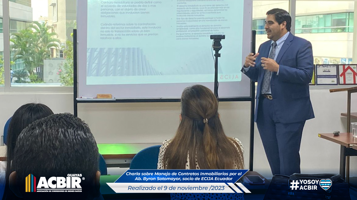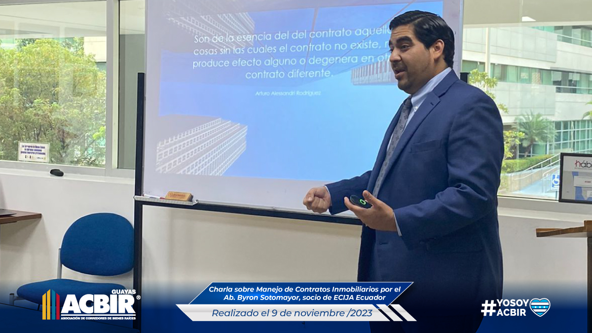 Charla sobre el manejo de Contratos Inmobiliarios Gracias al Ab. Byron Sotomayor de ECIJA ECUADOR que nos brindó una guía completa sobre el Manejo de Contratos Inmobiliarios en su charla el día 9 de noviembre.¡Imprescindible para aquellos involucrados en transacciones inmobiliarias! By net-lan | noviembre 13, 2023 | Boletin . Boletines |